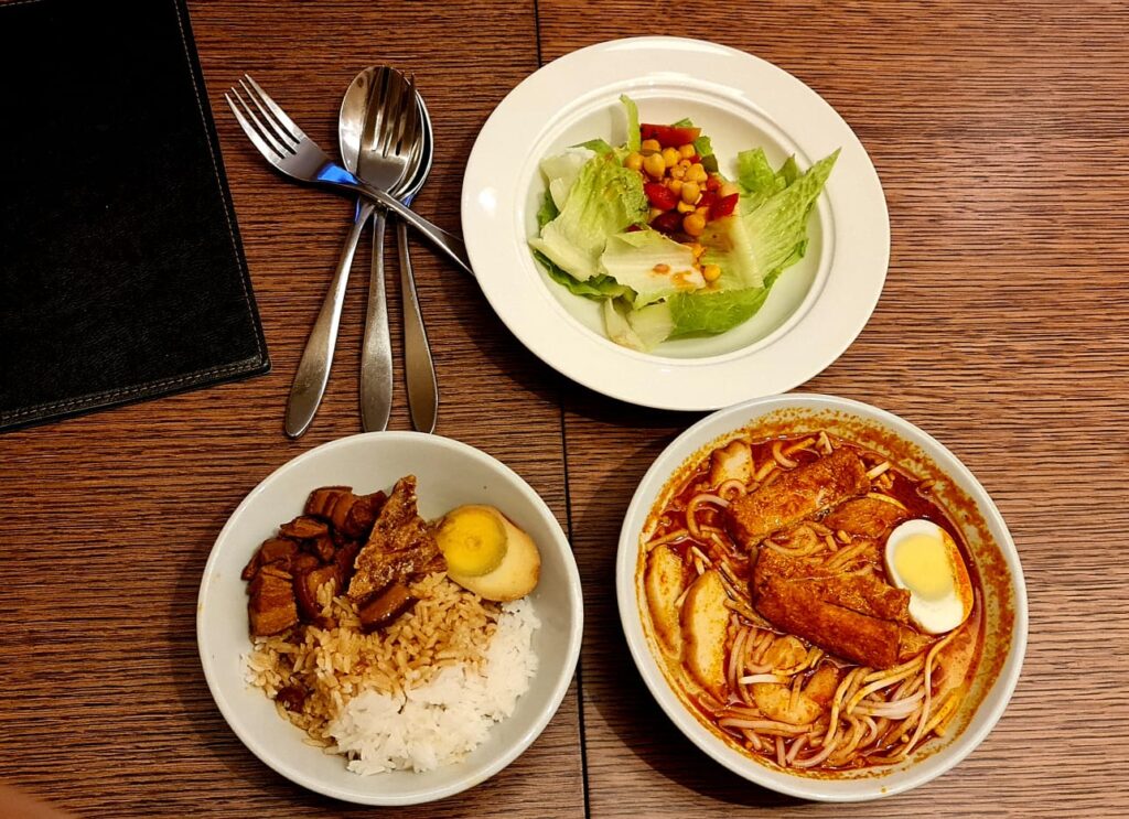 2pm – 再来吃午餐。因为还很不饿,所以我点了一个卤肉饭,而我朋友吃laksa。