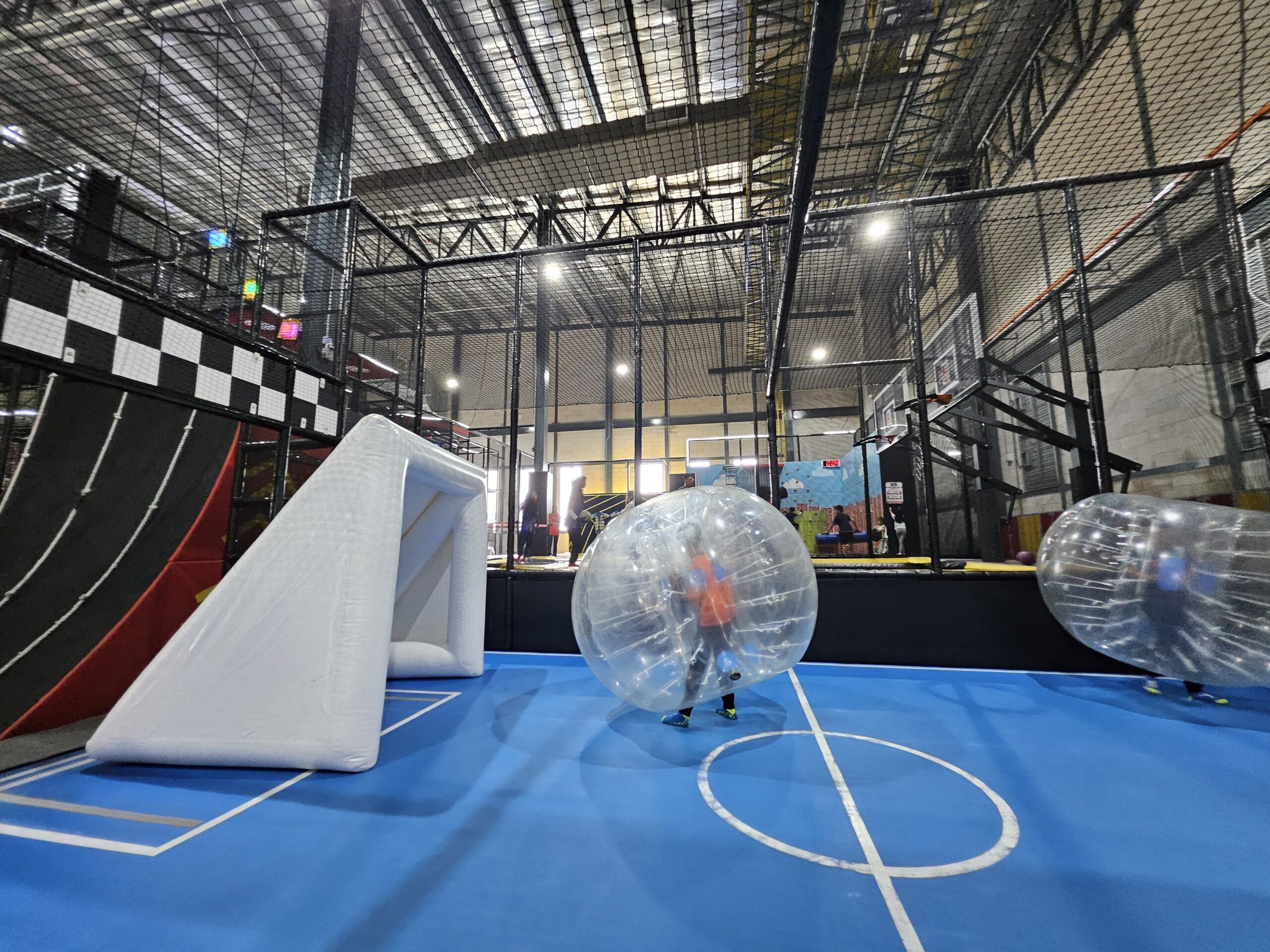 接下来是Bubble Bang,套上大气泡球互相撞来撞去,现场观感就像小牛犊在草地乱冲,超级好笑。