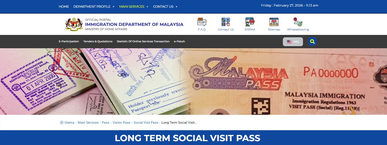 Pas Lawatan Sosial Jangka Panjang(Long-Term Social Visit Pass, LTSVP) 是由 Jabatan Imigresen Malaysia(马来西亚移民局)签发的长期居留准证。